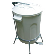 Processo de produção: rotomoldagem. Utiliza sacos de lixo